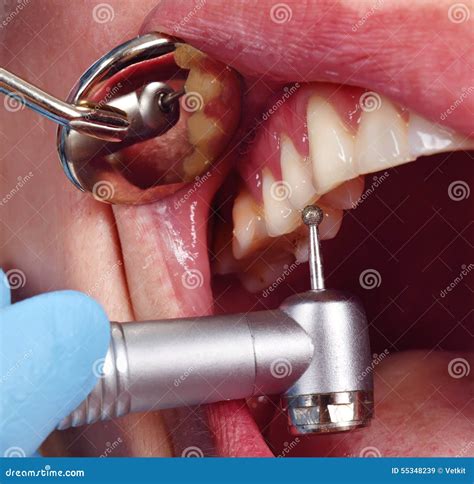 | Description: | Dentistry, a drill drills a patient's tooth |
